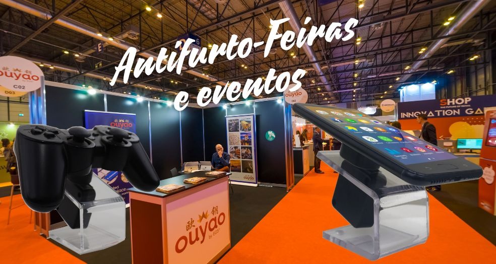 Expositores antifurto para lojistas, feiras e eventos